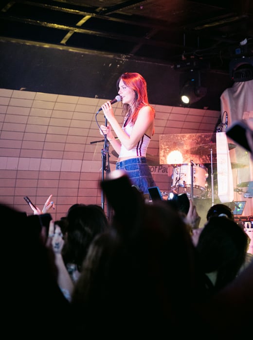 After a short wait, Eileen herself comes out swinging with "Head over Heels“ and continues with a solo of "King Bed“. It goes on rapidly with tracks like "Pity Party Princess“, a song about jealousy of someone you perceive as better looking. The setlist itself is relatively packed, running around one hour and twenty minutes with a lot of variety, switching between fast and loud songs to calmer, more introspective tracks seamlessly. There is not one dud to be found. Sprinkled are also interactions between her and the fans down in the crowd. These range from coming down into the crowd and singing alongside her fans, notably "Bet You Hate Me“ and "What A Girl Gotta Do". During the set, she also takes one fan up on stage, who gets to read the letter announcing the surprise song. The one we got was "Teenage Girl Diary“.