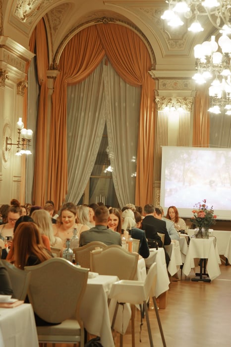 In an evening full of elegance, evening gowns, and great readings, the new publishing house PureBelle and the book Kiss the Right Bride by Daniela Hartig celebrated its release with a “Wedding Dreams - Release Party.” There, we met the German bestselling author Jane S. Wonda, whom we had an Interview with, and of course, many fans of the dark romance or new adult genre, with whom we had many interesting talks about their love for the genre and Jane's books. Other authors of the publishing houses PureBelle and BlackEdition could also be found during the evening. Some even gave an exclusive sneak peek at their upcoming books in various readings. My highlight of the evening was the reading of Kiss the Right Bride by audiobook narrator Marlene Rauch. As someone who had not read the book's previous edition yet, it left me wanting to read it, not only for the promising plot but also for the gripping narration. Another highlight was the beautiful interior of the Palais, which reminded us of a beautiful dancing hall in a castle.