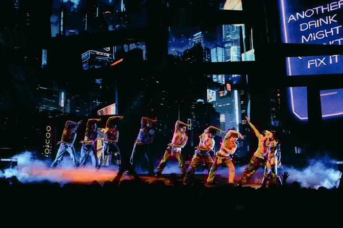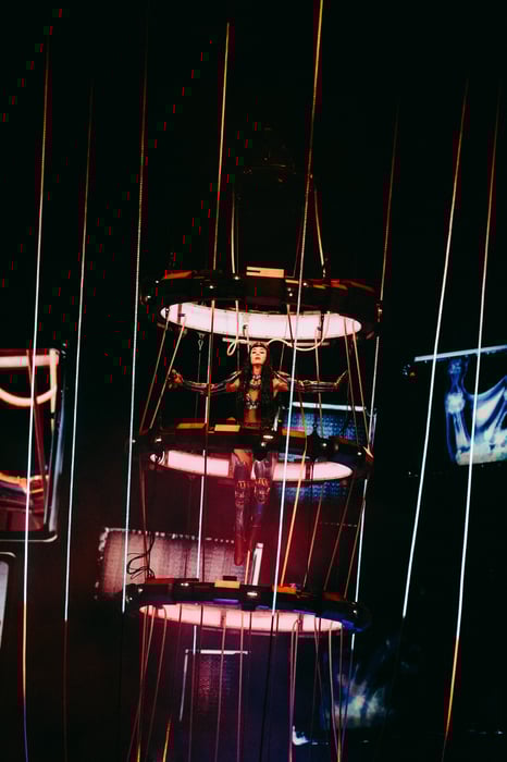 The Uber Arena became Katy Perry's playground. She soared on wires through a garden of giant flowers during “Nirvana”, hit poignant notes in “Crush", and proclaimed devotion with “I’m His, He’s Mine”. Her dancers matched her energy with acrobatic choreography on “Wide Awake”. Then, a technological twist: the audience was invited, via a futuristic VCR prompt, to choose the next song by QR code, seamlessly integrating fans into the show. “This is about the fans,” Katy Perry declared, and she delivered.