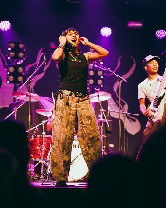 Right when support act Pinkshift went on stage, the energy in the room shifted. The band is made up of Ashrita Kumar (vocals, guitar), Paul Vallejo (lead guitar), Myron Houngbedji (drums), and Erich Weinroth (bass). Their set had an instant effect: everybody's hands were up, and a circle pit formed during the first two songs of their set.