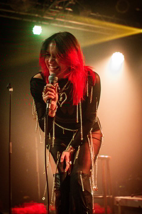 After announcing the contest winners on stage – "Ohhh applause," she mused. "I like that. It's like sexy bingo," she beamed. She opened her final song with: "This next song is a reminder to love the shit out of yourself." The pop-rock anthem had the audience dancing, nodding, and jumping along.