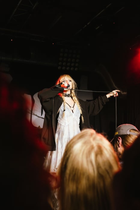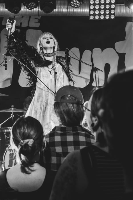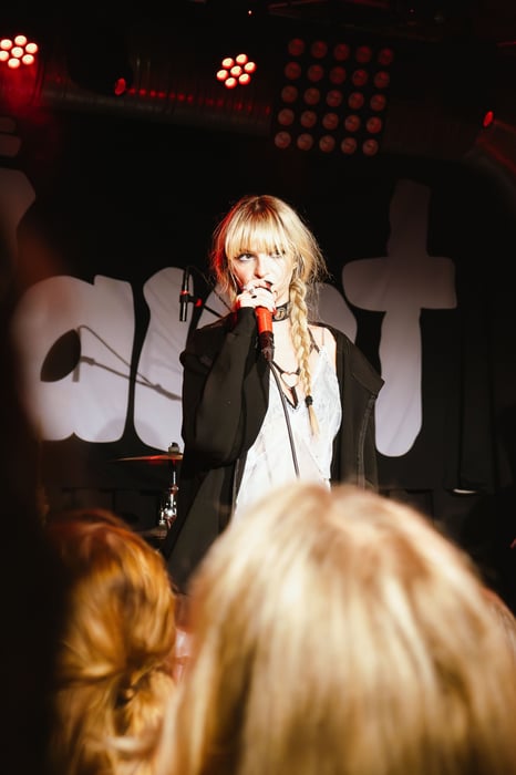 Once The Haunt entered the stage, the crowd's reaction was undeniably heartfelt, and you could feel the energetic excitement in the intimate crowd. Singer Anastasia's emotive vocals carried every line, and her stage presence ranged from her vulnerability one moment to a commanding roar the next, which dominated the intimate room. Guitarist and Singer Maxamillion delivered melody-tight riffs and vocals, which crafted a soundscape that demanded the crowd form a connection to what was happening in the songs and on stage.