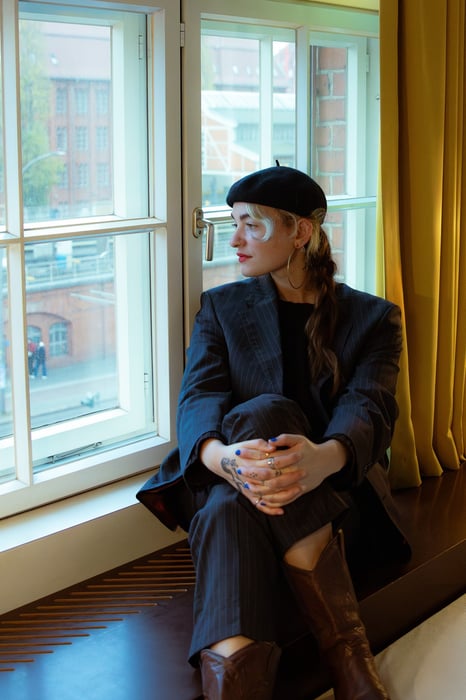 néomí: Every day is like a different vibe. Sometimes you're moody, and sometimes you're like super extra where I want strings. And sometimes you just want to be like ballsy and fuck around a bit and feel more like a rock star, I guess. Sometimes I wish I were in a rock band. But I'm not. I play very sad songs. And I've been on tour doing solo shows, which was very nice at the moment, but now I'm a bit done with playing solo. So for now, the most honest answer in the moment would be that I love to play with the band and I love to play with like some unicorns.