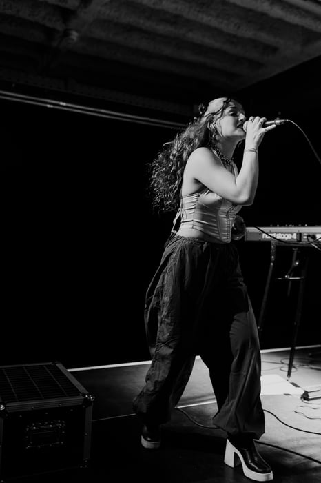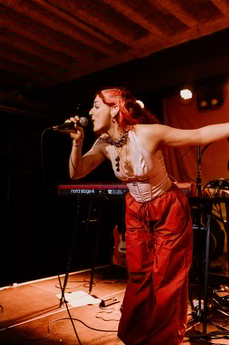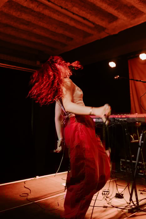 Her third and unreleased track talked all about the many annoying tips for mental health that one gets yet doesn't need. I especially enjoyed the clever hook where she sang the line Therapists hate this Trick and the powerful guitar solo that added the right sound - let's hope this one comes out soon for you to enjoy as well. After a few slower songs where the crowd had the chance to participate with her introductions how to sing along, she performed her new emotional song "Belügst dich selbst", which was not only well arranged musically, but one that was stuck in my head afterwards. The theme of running away from one's feelings is one that the audience could clearly relate to as they moved along with the music. I especially enjoyed the overall theme, the chorus and the vocal repetition at the song's end. The last song, "Rakete" is about to come out and was my favorite of hers of the night. It had amazing vocals, groovy beats and fun (and cunty) lyricism - reoccuring themes and sound that could be found in all of her performance that day.