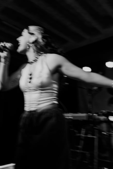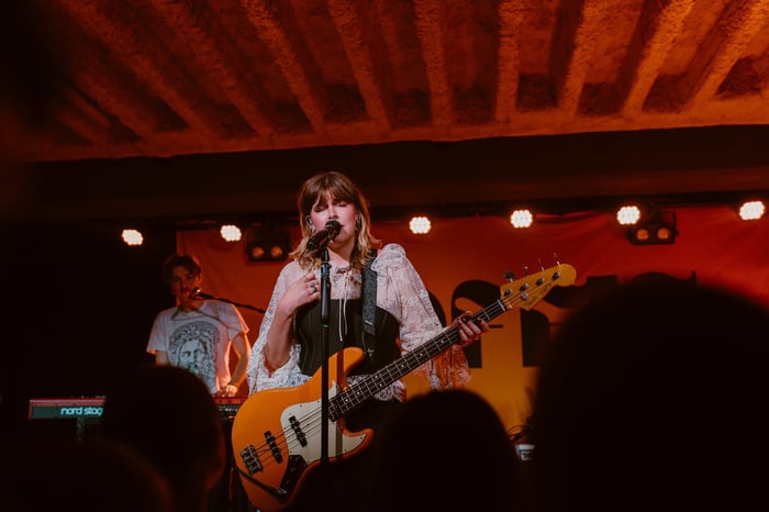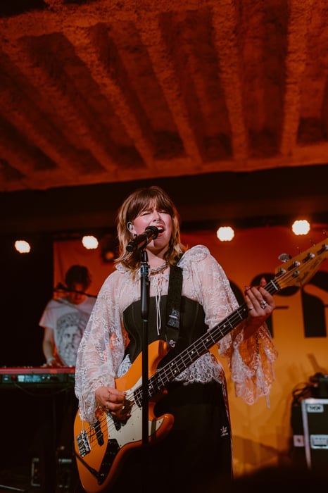 The mood switched with her emotional song "Seifenspender". A song all about exes and feeling sorry and reminiscent. Her live version was proof of her vocal range as she sung it with many emotions in her voice. The mood persisted, however the next song was a surprise to me as it was one of her older songs called "Heute Sterben". It was my favorite of the night as her live version of it had a ethereal feeling to it - she stood there with her guitar and looped her beautiful voice in various tones. Once the chorus hit, the power of her voice gave me shiffers and the switch between english and german lyrics fit well to the dramatics of the song. The theme of english in her songs continued to the next song "The Puppeteer" - another one that focused on her slow and ethereal voice. The lyrical theme of oppresion was clear and well written. It was enjoyable that she remarked that all members of her band got to play the bass during her set, for this one even her drummer got to play the bass. The long wooos afterwards showed that the audience seemed to love it. I was deeply impressed by her English songs, as she is mainly known for her german indie music, I later got to know that these songs were first released under the name HASSLA.